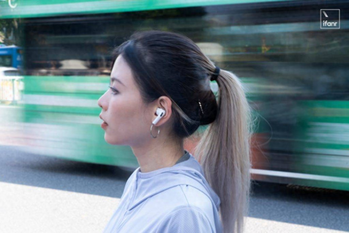 AirPods Pro 3 的佩戴体验跟前代不太一样,入耳部分更深,胶塞也变硬了——换来的是更强的被动降噪。加上升级的麦克风系统,主动降噪能力也更上一层楼。简单说,戴上它,比前代更安静、听得更清楚,通勤路上不再需要调高音量压马路噪音,20%的音量就能听得很清楚。